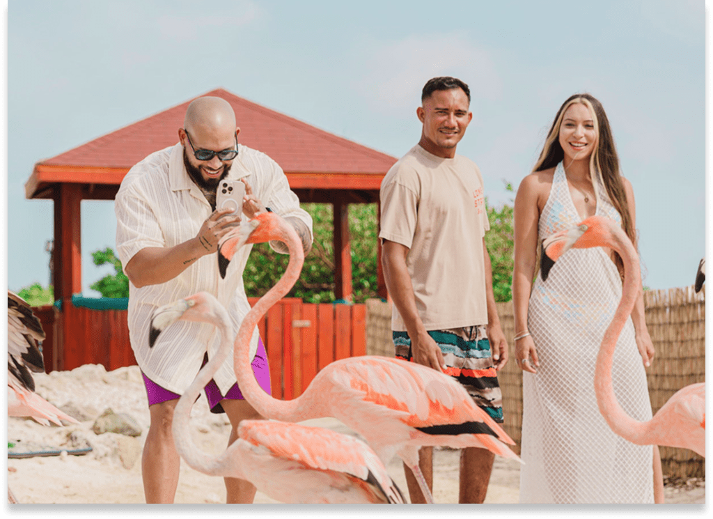 Experience an exclusive moment with Aruba’s flamingos – a rare and tranquil encounter found only on Fortunata’s full-day charter.